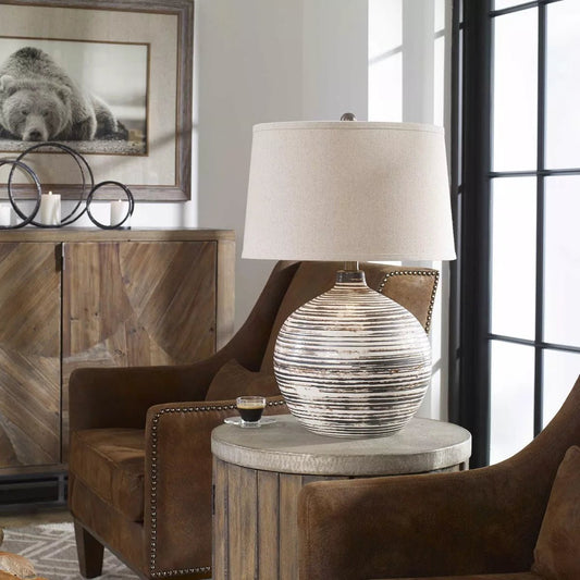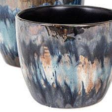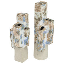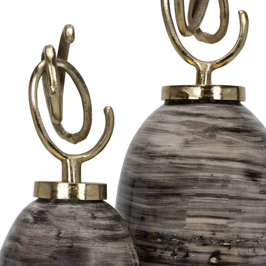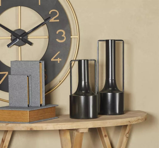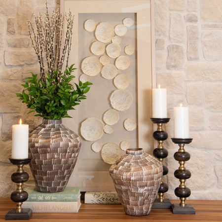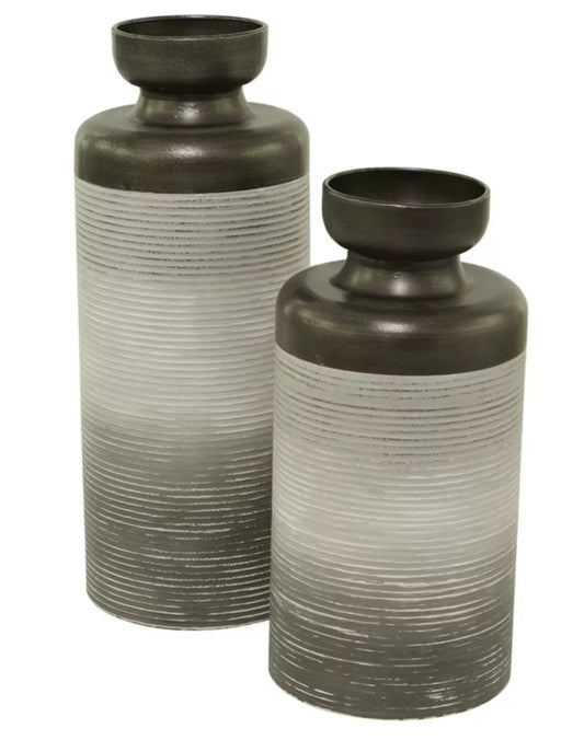 Bronze Metal Vase with Embossed Ribbing, Set of 2
