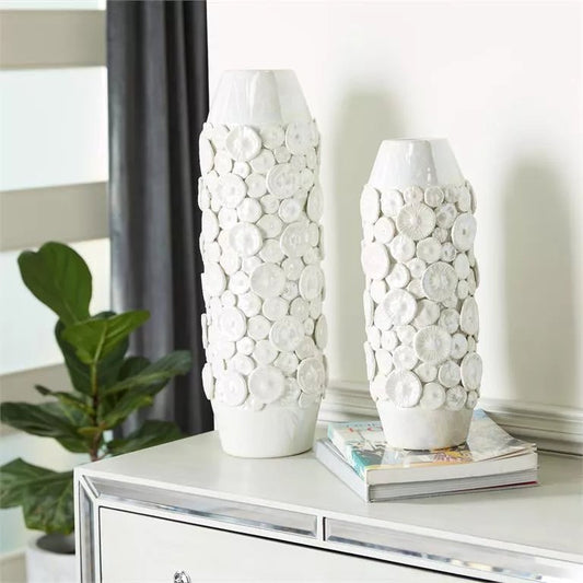 Antique Silver Tall Glass Flower Vase with Etched Patterns