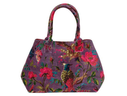 Paradise Purple Birds Velvet Hand Bag