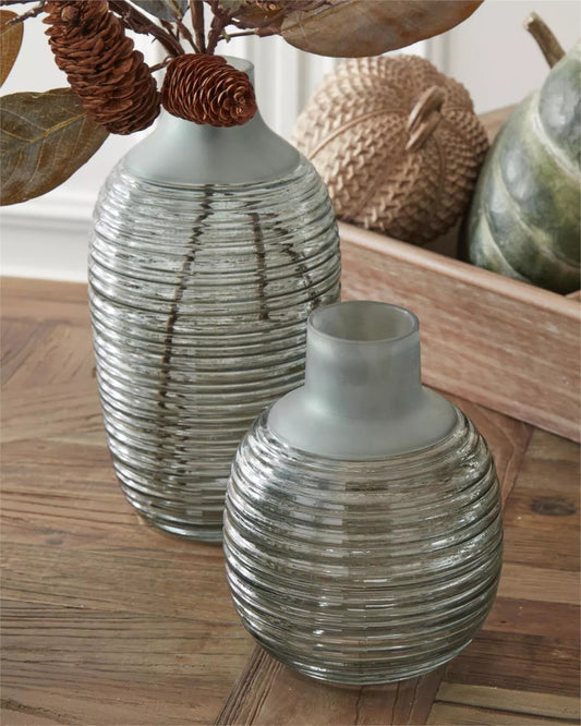 Frosted Sage Green Ribbed Bottle Neck Vases