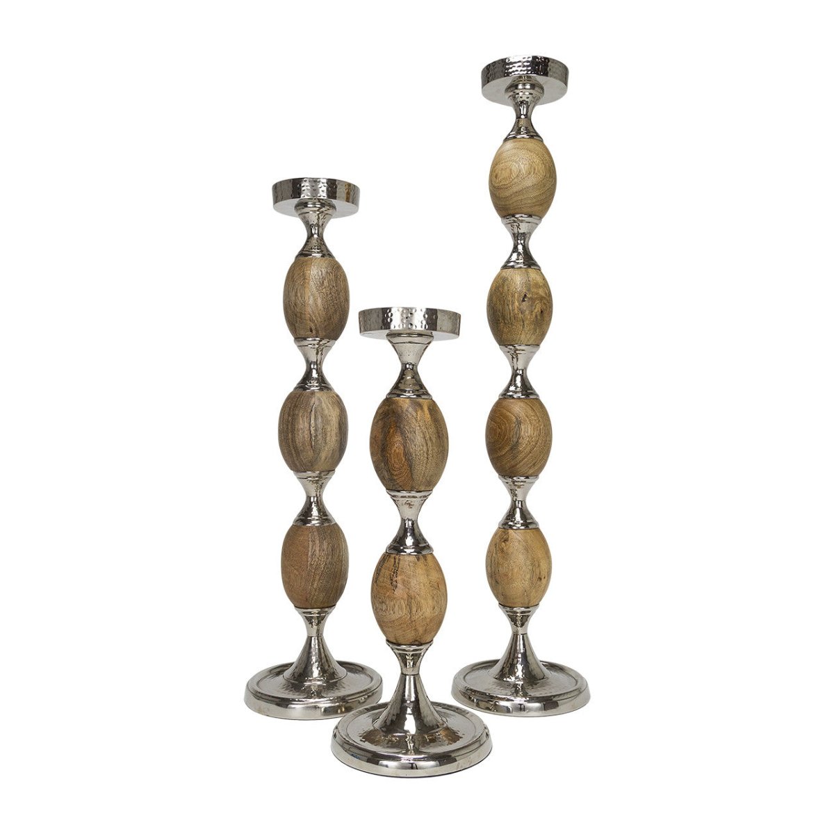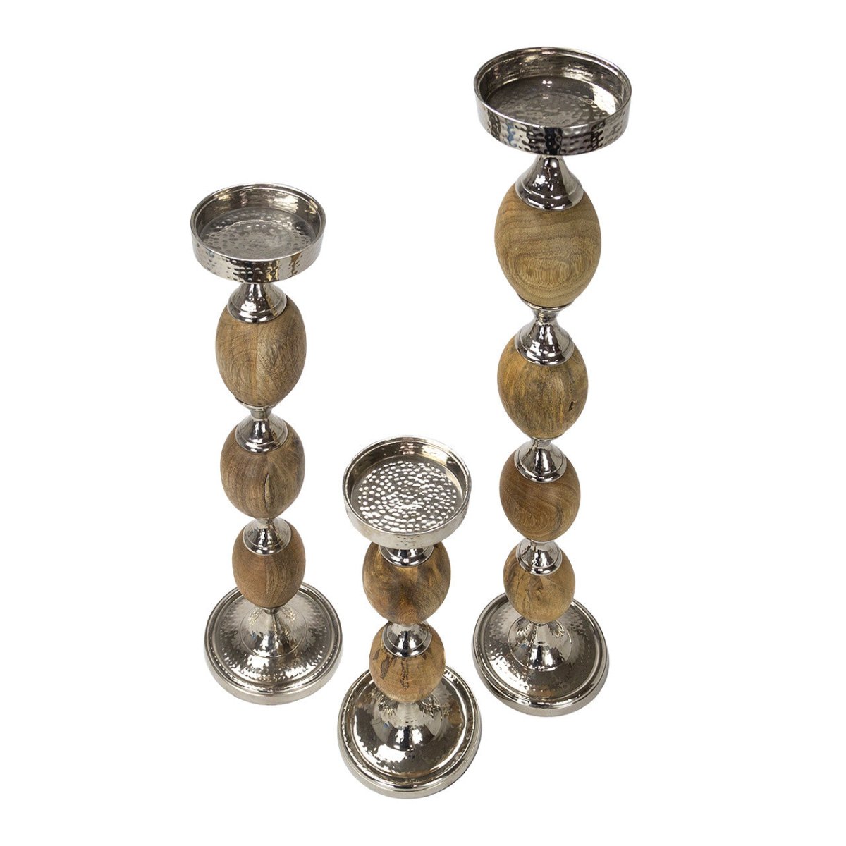 - **Material Excellence**: Made from a harmonious blend of brown wood and reflective silver brass metal, these holders create a striking visual contrast that enhances their aesthetic appeal.