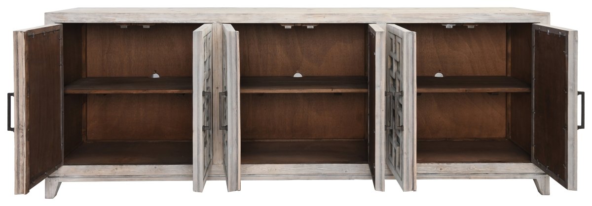 The Arley 6-Door Sideboard is not just about practical storage; it’s also a statement piece that exudes timeless design. Its hand-finished, distressed look adds a lovely touch of rustic charm, creating a warm and inviting atmosphere for family gatherings and entertaining guests. Measuring an impressive 98 inches in width, 18 inches in depth, and 36 inches in height, this sideboard provides a substantial surface for displaying your favourite decor or serving up delightful spreads during special occasions.