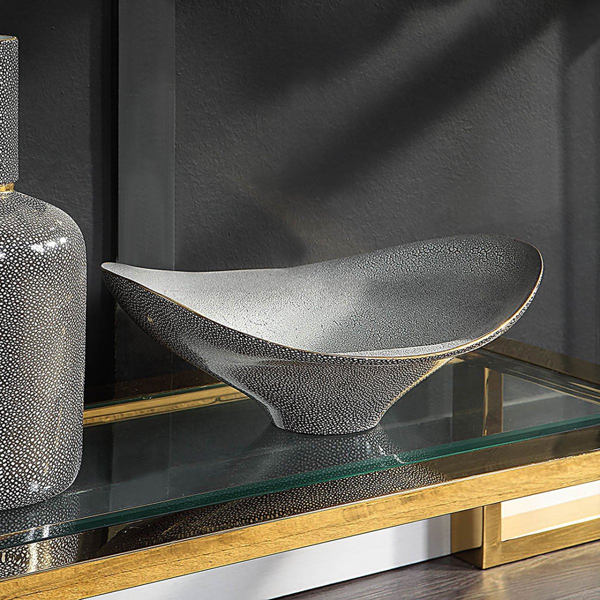 Introducing the Belton Bowl, a remarkable piece of home décor that seamlessly merges style with practicality. Designed for those who appreciate elegance and sophistication, this exquisite bowl is crafted from a durable grey material and elegantly adorned with a striking golden lining, making it a stunning centerpiece for any table setting.