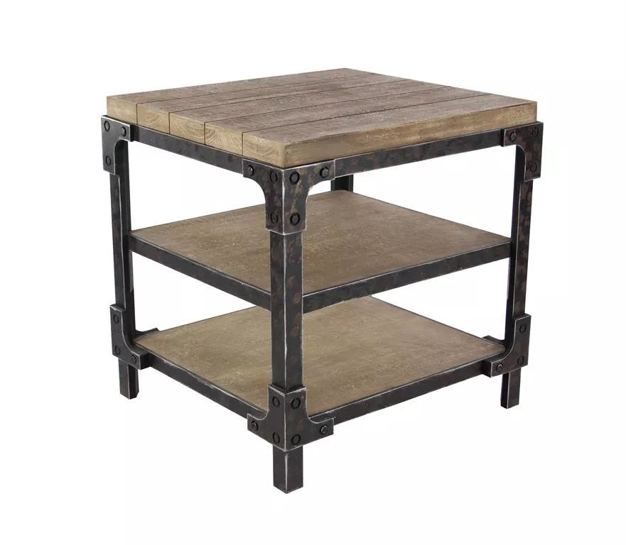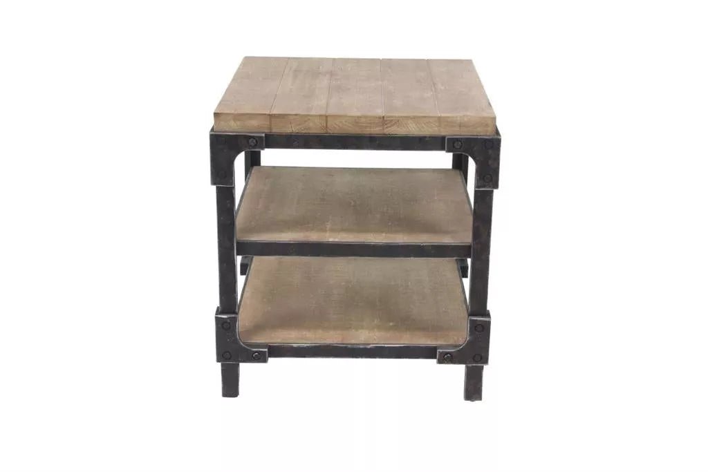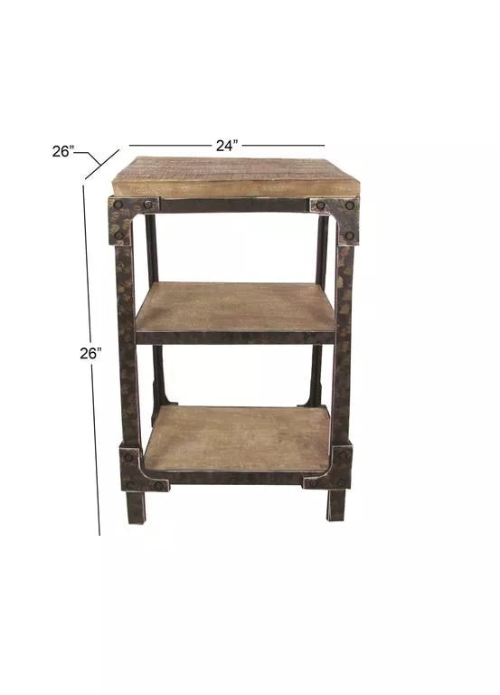 Introducing the Wood With Metal Two Tier End Table, a stunning fusion of rugged charm and edgy allure that will elevate your interior design. Meticulously crafted with a robust iron frame and beautiful Chinese fir wood shelves, this end table seamlessly combines durability and style, making it a must-have piece for your home.