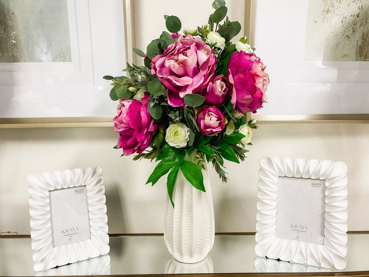 Bring the allure of nature indoors with this breathtaking arrangement. Order your Custom Floral Medium Peony & Roses today and elevate your surroundings with an everlasting touch of elegance and charm. Experience the magic of real touch floral that transforms ordinary spaces into extraordinary ones.