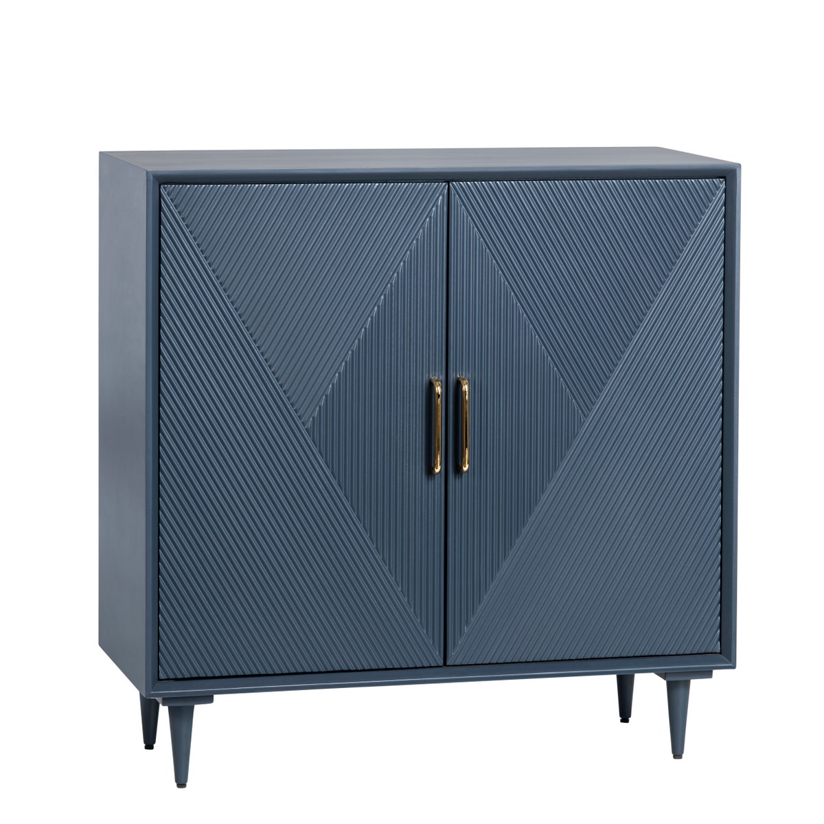 Introducing the Crestview Arvada Cabinet, a stunning piece that effortlessly enhances your living space. With its sleek design and bold blue finish, this 2-Door Chest is not only functional but also a captivating focal point in both modernist and transitional style interiors.