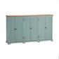 Crafted from high-quality fir wood, the light brown finish imbues warmth, while the charming aqua accents evoke the tranquility of seaside living. The six louvered cabinet doors not only enhance its coastal aesthetic but also provide ample storage solutions for keeping your essentials neatly tucked away.