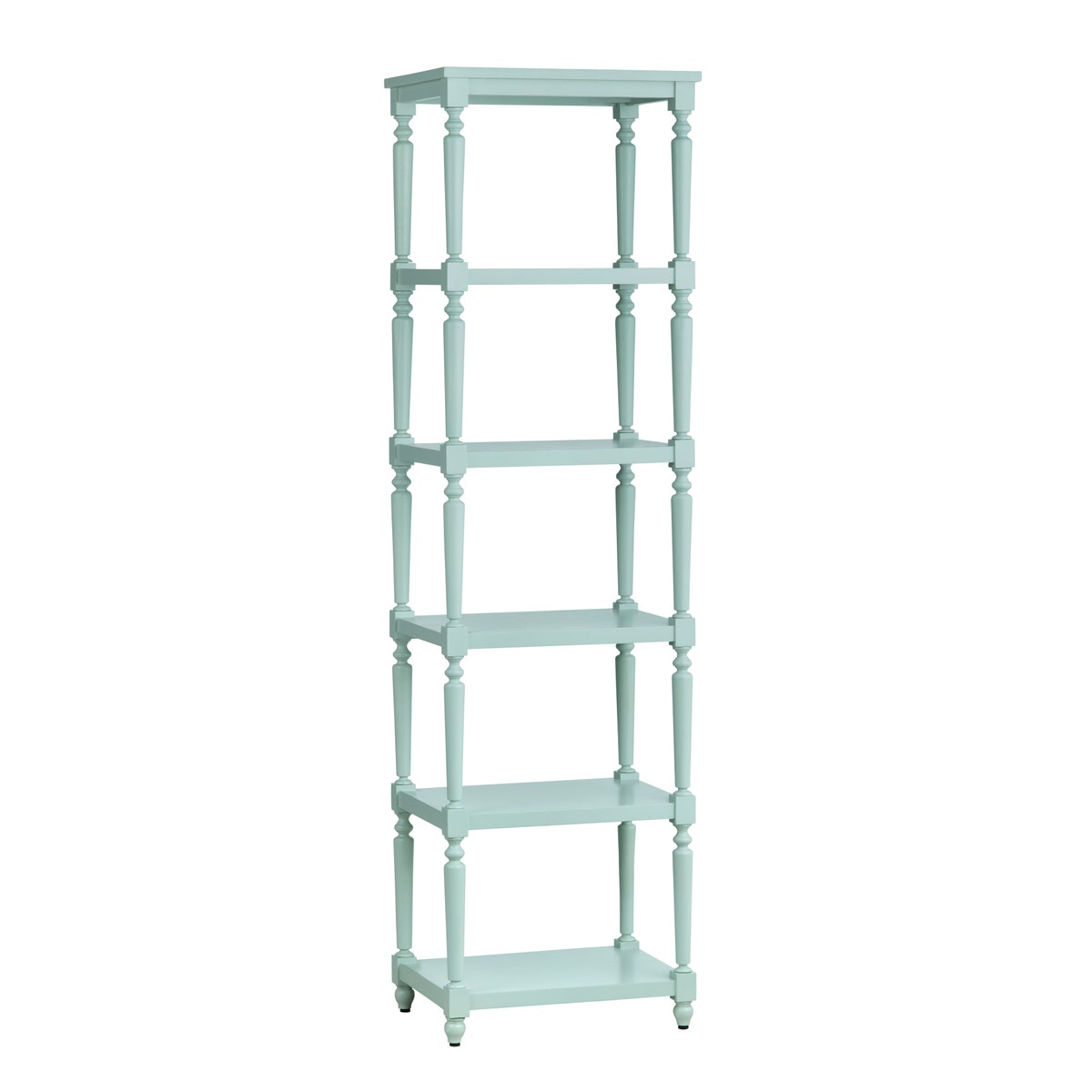 With dimensions of 20 x 15 x 71.25 inches, this elegantly painted turquoise piece serves as a striking focal point in any room. Its five spacious shelves, each measuring 18.8 inches in length and 13.75 inches in width, are perfect for showcasing your favourite décor, books, or treasures collected from your travels. The shelves are thoughtfully spaced with a generous height of 12.1 inches between them, allowing for versatile storage solutions.