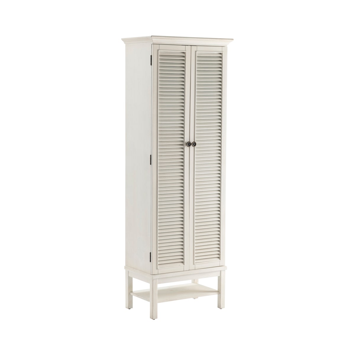 Introducing the Crestview Collection Magnolia Louvered 2-door Tall White Storage Cabinet – the ideal solution for your home organization and the perfect blend of style and functionality. Designed with a traditional and coastal aesthetic, this tall cabinet is crafted from durable white birch wood, providing a bright and airy feel that complements any room decor.