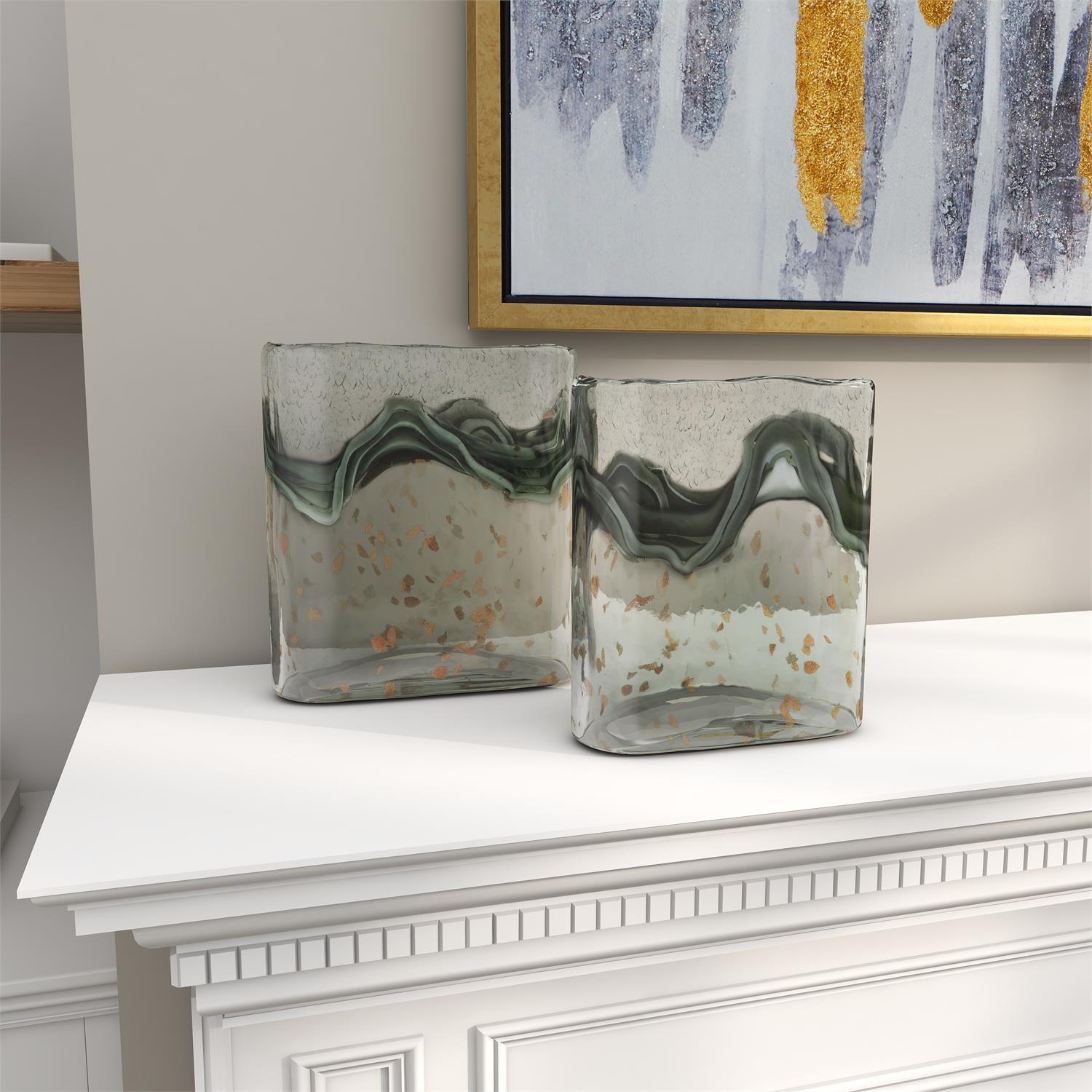 Crafted from pure glass, this one-of-a-kind vase features beautiful shades of gray, complemented by a stunning glazed finish. The sleek lines and minimalist aesthetic of the design make it an ideal addition to contemporary décor, effortlessly elevating your home or office environment.