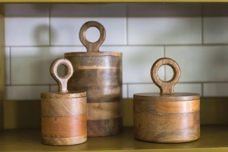 Invest in this exquisite Mango Wood Canister and elevate your home organisation while making a chic statement. Add this beautiful piece to your collection today and enjoy the perfect blend of utility and aesthetics. Perfect for any occasion, it's the ideal gift for friends and loved ones who appreciate quality craftsmanship and sustainable design.