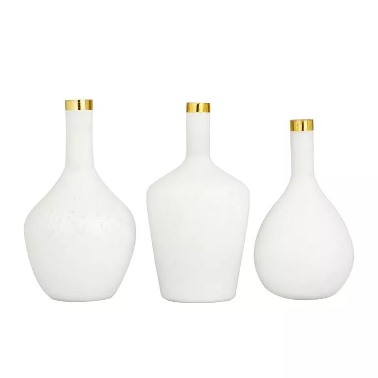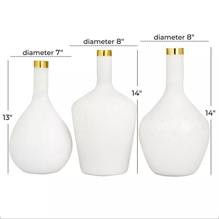 Crafted with meticulous attention to detail, this vase showcases traditional glass blowing techniques, ensuring each piece is flawlessly unique. The textured white body radiates timeless charm, while the lustrous metallic gold rim creates a breathtaking contrast that instantly captivates the eye. Its sophisticated design not only enhances visual appeal but also serves as a stunning focal point that draws admiration from all who enter your space.