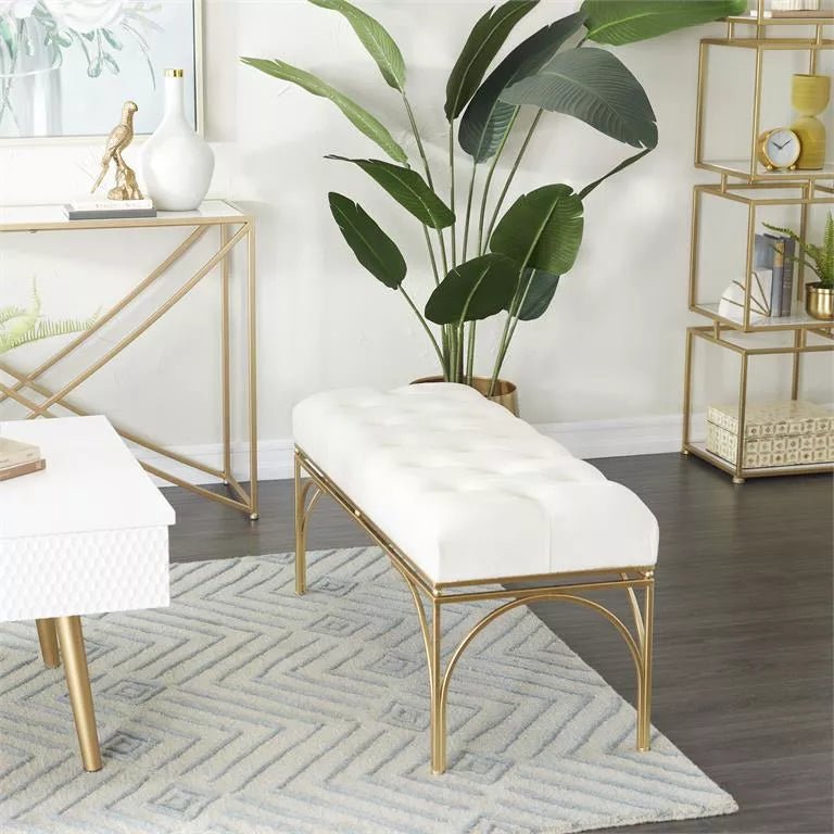 - **Sophisticated Style**: Transform your home into a haven of sophistication. The White Metal Bench with Velvet Seat is designed to elevate your decor, adding a touch of glamour that captures attention and admiration.